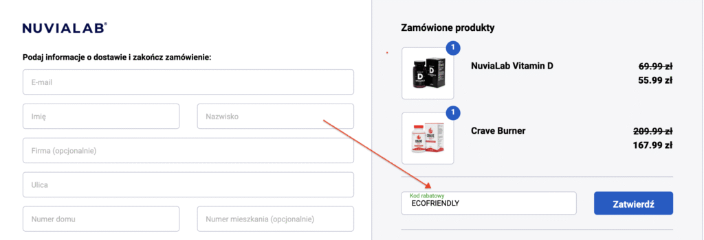 Specjalnie dla naszych Czytelników, wspólnie z NuviaLab, przygotowaliśmy dla Ciebie kod rabatowy NuviaLab. Kod ECOFRIENDLY upoważnia każdą osobę, który zdecyduje się zakupić suplementy i kosmetyki na stronie producenta, do 20-procentowej zniżki. Wystarczy, że wprowadzisz kod rabatowy ECOFRIENDLY podczas dokonywania zakupów w pole: kod rabatowy. Zniżka zostanie naliczona automatycznie.